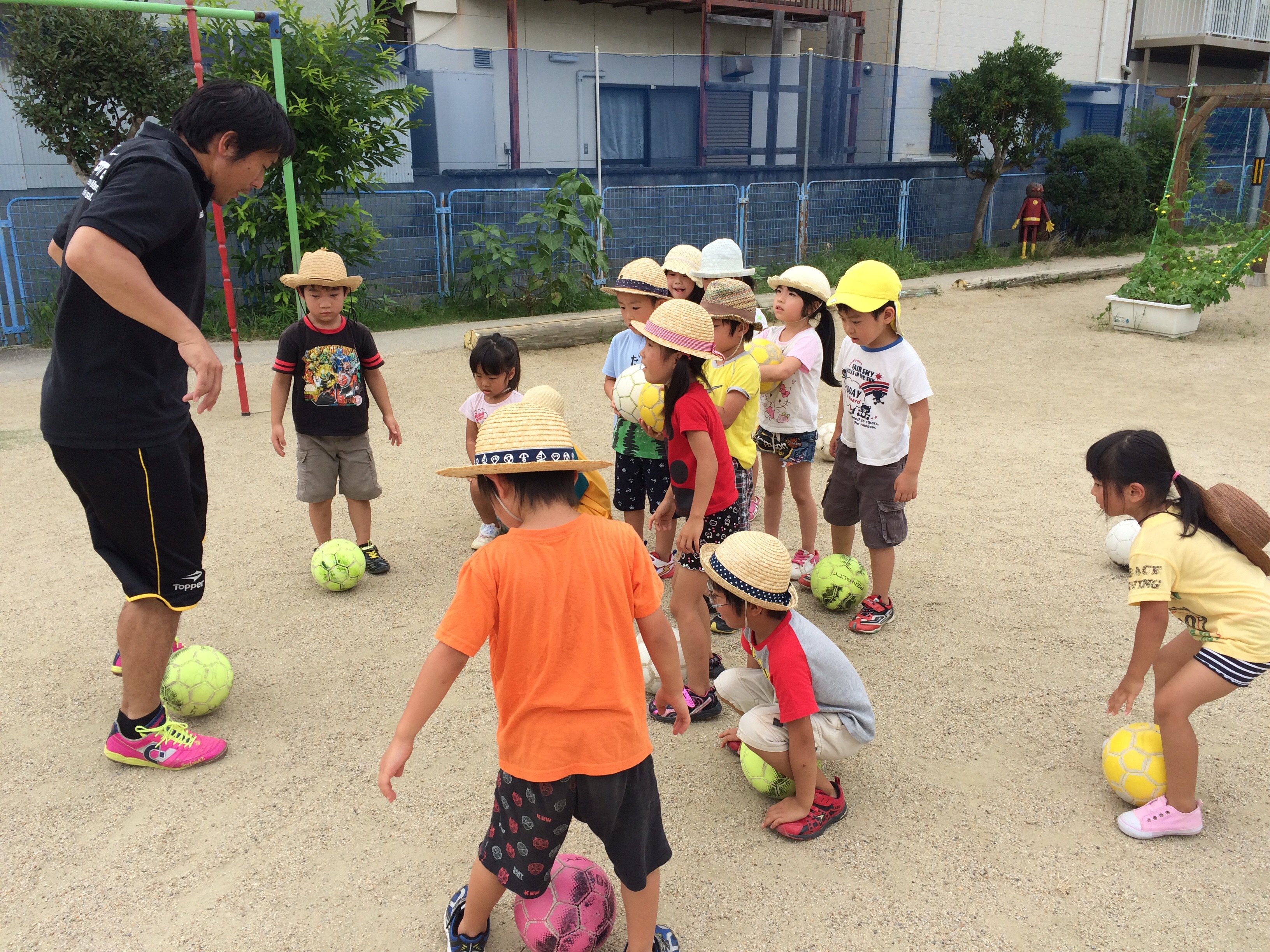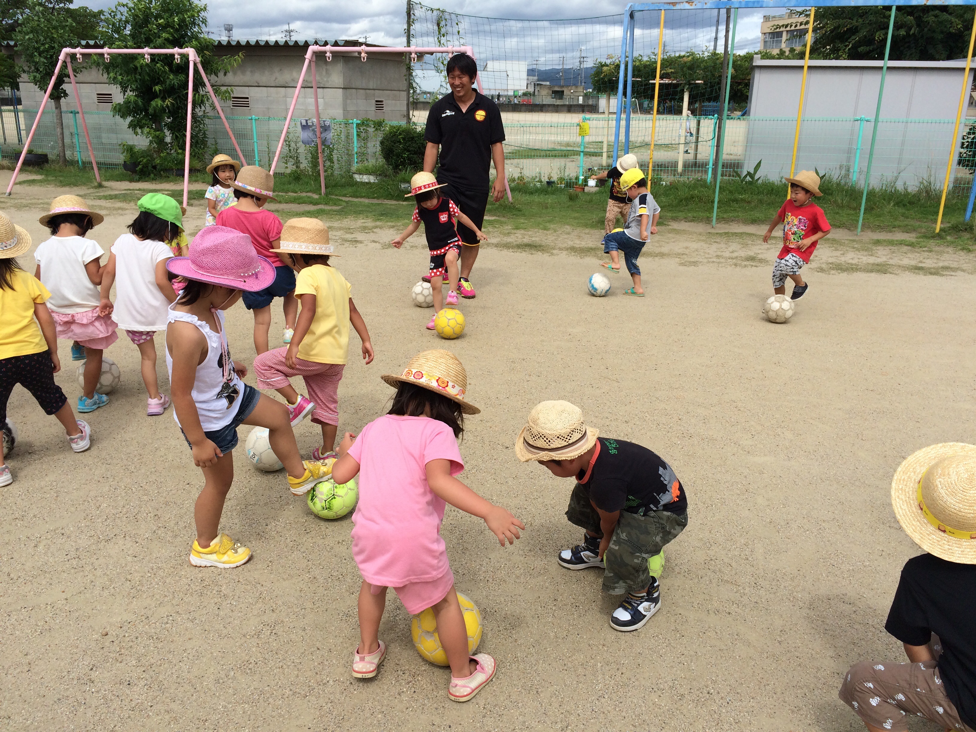 4.5歳の子供たちとボールを蹴ったりコントロールしたり、走ってボールを追いかけたり、運動の楽しさやボールタッチなどを教えることができました!