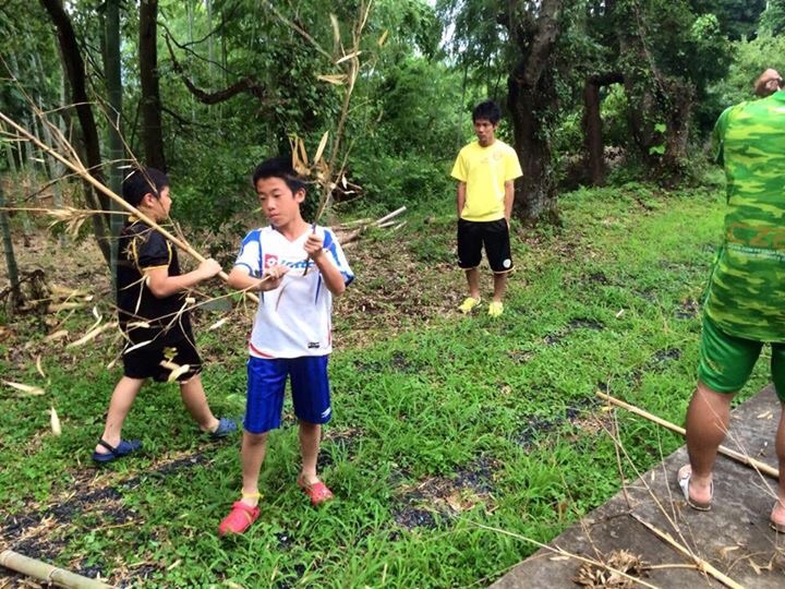 前日に自分たちで竹を切り釣竿をつくりました☆