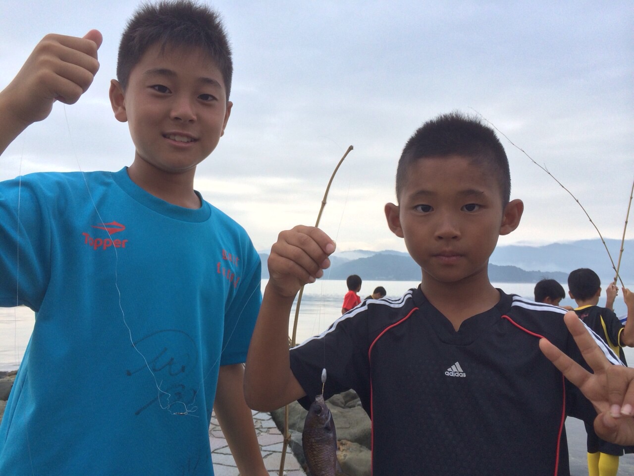 今日は合宿最終日で朝から早く起きて近くの海で魚釣り体験をしました!